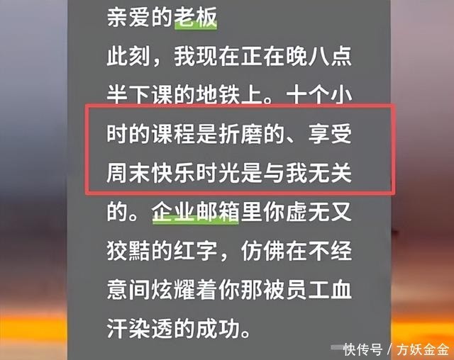 更有员工表示,他刚刚结束了10个小时的课程,疲惫的坐在晚上八点半的地铁上,周末悠闲的快乐时光似乎与他无关,而那封虚无又狡黠的祝贺信。